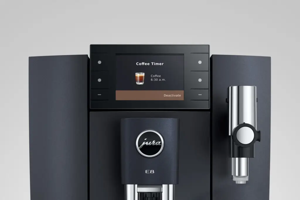 De E8 fascineert ook met intelligente technologie zoals de Coffee Timer. Hiermee kunt u uw ochtendkoffie programmeren via de app J.O.E.® en genieten van vers gemalen en bereide koffie zodra u opstaat.